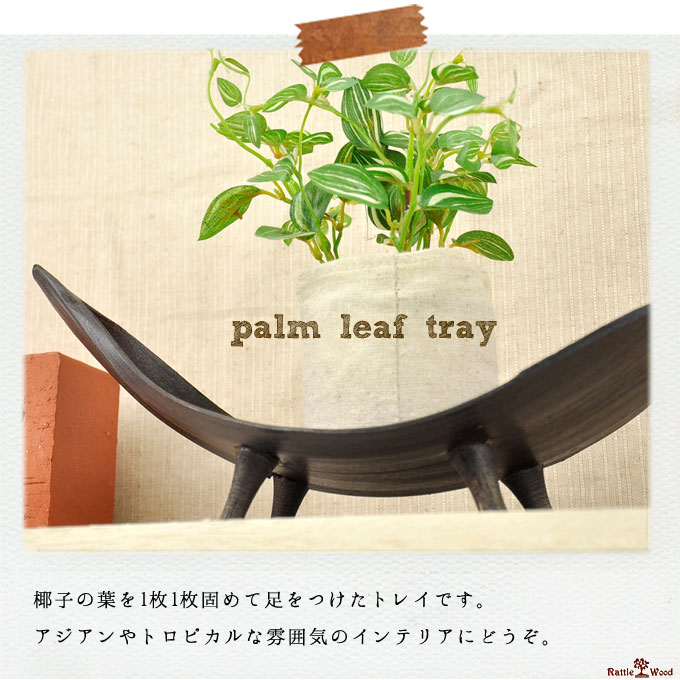 (送料580円 ※離島除く) 5,400円(税込)以上お買い上げで送料無料! 【説明】 椰子の葉を一枚、一枚固め足をつけた大きなトレイです。